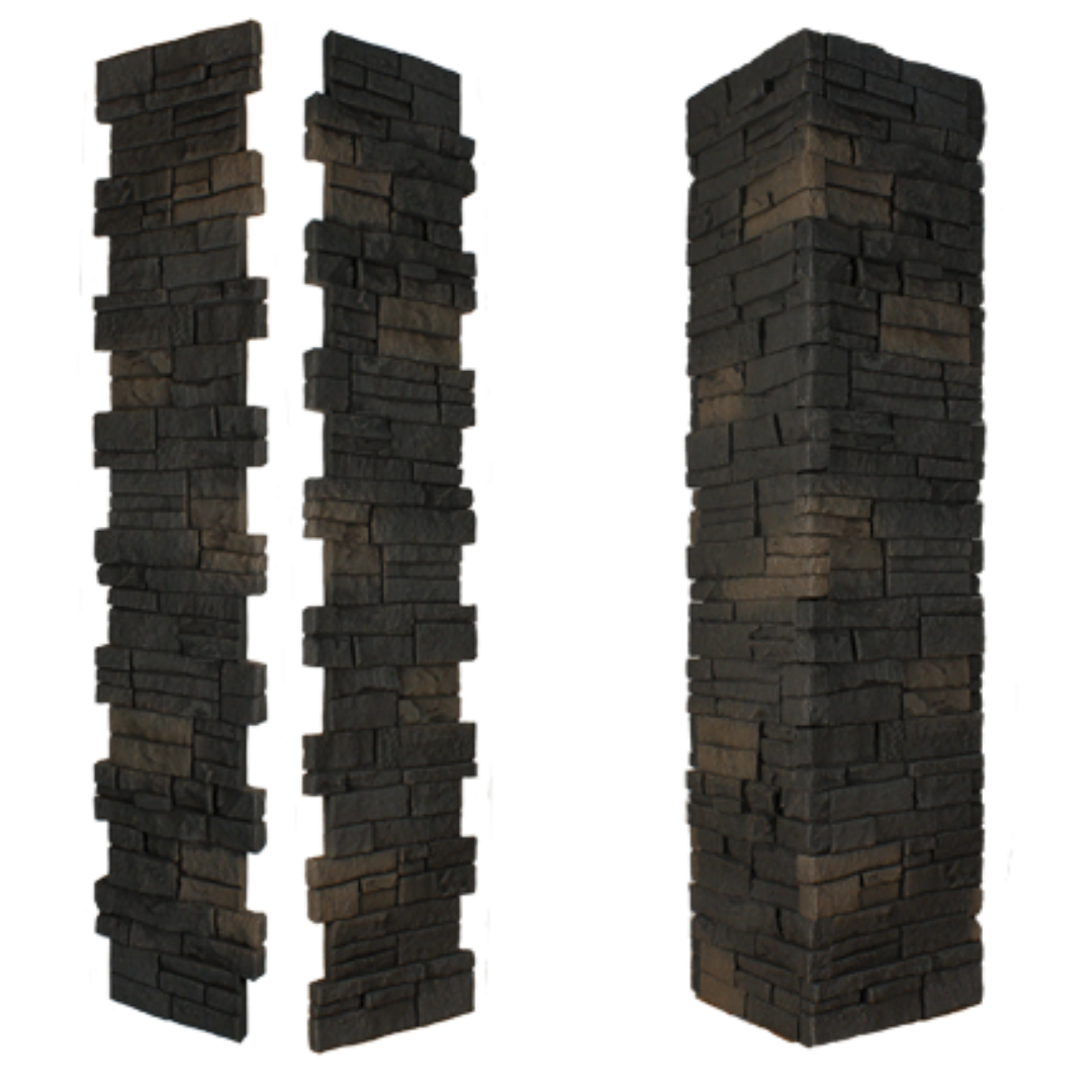 Black Blend Stacked Stone Pillar Panels are designed to be installed quickly and easily to give any pillar, whether interior or exterior, a stone finish. The Pillar Panels have staggered edges making them interlock around any pillar quickly.