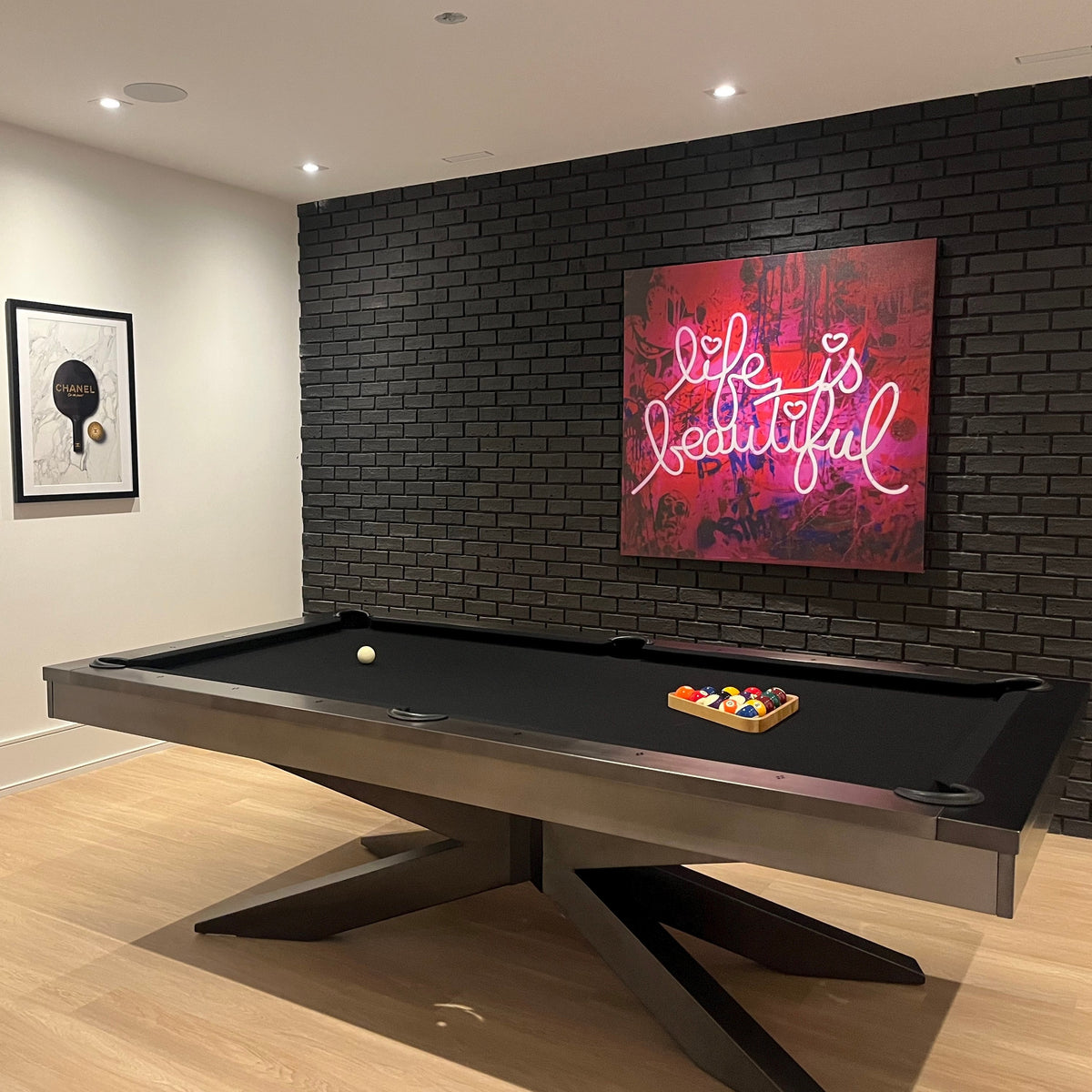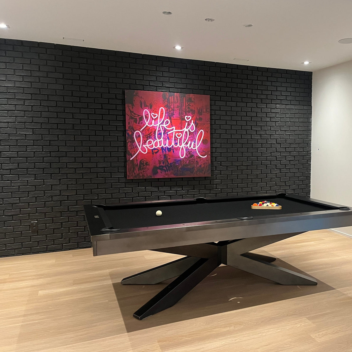 These panels are extremely lightweight and are simply screwed onto the wall. No need for intense labor or reinforcement of walls like with typical brick wall! Panels are cut with a normal wood saw blade. All that is required for install are a few simple tools and a few hours.