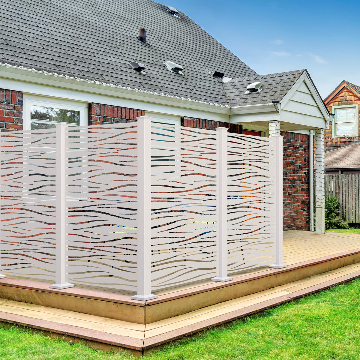 The Sunbelly Privacy Screen in the High Tide profile offers a medium-high level of privacy for your deck in a calming design meant to inspire thoughts of ocean waves.