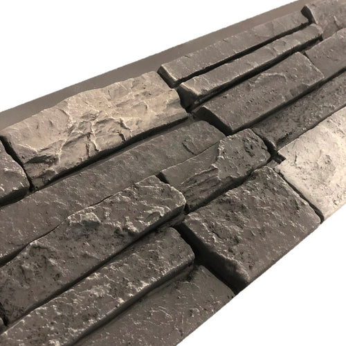 Quality Stone corners are panels used for outside corners and come in lefts and rights. When working up a wall, Quality Stone corner panels are used to wrap around outside corners so there is no need to miter. Quality Stone corners can be used interchangeably as you work up the wall so no seam becomes visible. The inside dimensions on the return are 0” and 1.5.”